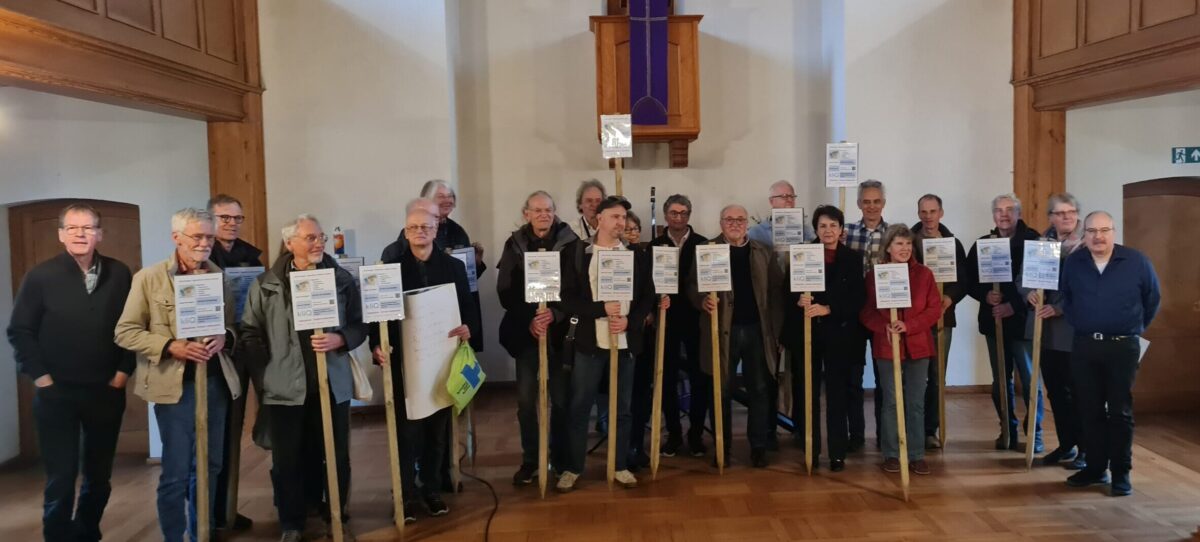 Die Schilder hatte Christian Küttner am Ende der Infoveranstaltung am Samstag den 14. März in der vollen Emmaus-Kirche verteilt, fast 200 Menschen waren gekommen. Die kliQ-Genossenschaft hatte diesmal in die Kirche eingeladen, weil die vielen Interessenten beim letzten Mal nicht in dem kleinerem Emmaus-Gemeindesaal Platz fanden. Verschiedene KliQ-Mitglieder gaben in der zweistündigen Veranstaltung den Planungs- und Finanzierungsstand der geplanten dezentralen Nahwärmenetze bekannt. Die detailreichen Folien ihrer Power-Point-Präsentation sind auf der kliQ-Website https://kliq-berlin.de abrufbar.