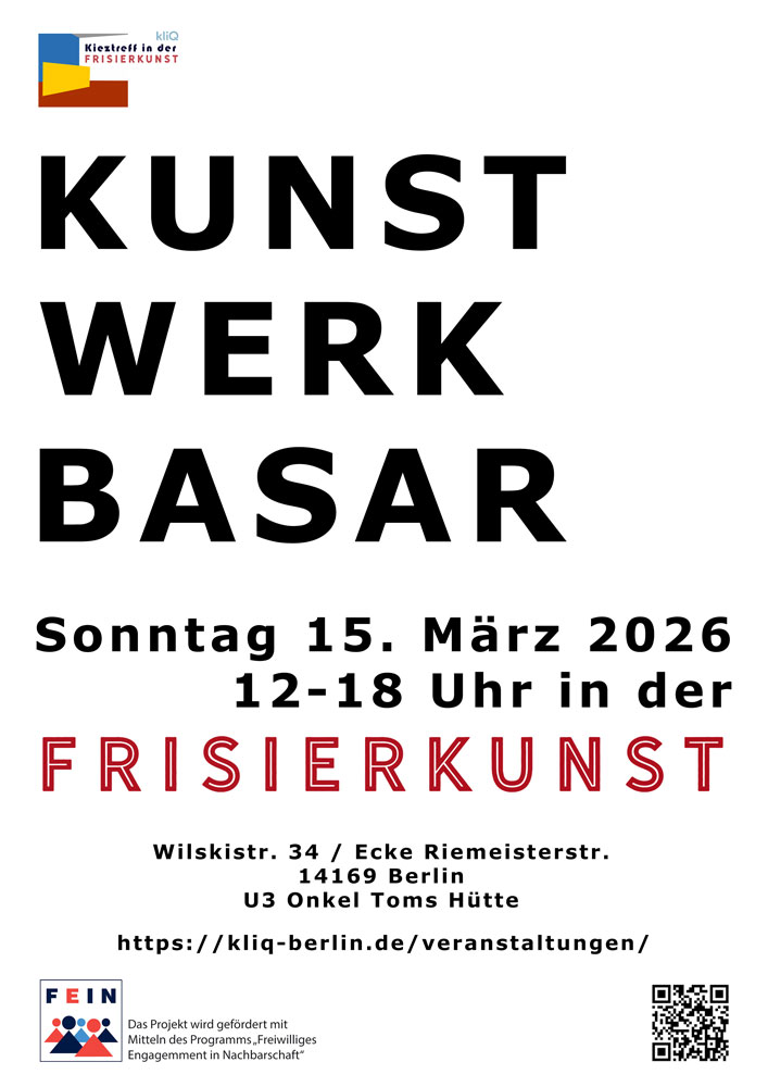 Wenn Sie eine Veranstaltung in der „Frisierkunst“ planen oder den Kieztreff für ein Nachbarschaftstreffen, eine Beratung oder eine Abteilungsversammlung nutzen wollen, schreiben Sie uns: kieztreff(at)kliq-berlin.de