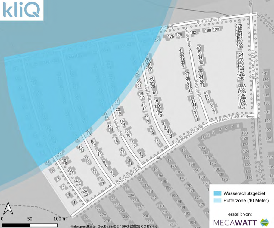 Inzwischen hat die Gewässerschutzbehörde auch mitgeteilt, dass nunmehr Erdsonden bis zu einer Tiefe von etwa 200 Metern genehmigungsfähig seien; bislang waren es nur 45 Meter (hier). kliQ hatte sich lange für tiefer in den Untergrund reichende Sonden eingesetzt, weil dann weniger Sonden und damit kleinere Sondenfelder erforderlich sind, um ein Projektgebiet zu versorgen. Dieser Durchbruch in der wasserrechtlichen Genehmigungspraxis wird kurzfristig in die abschließenden Planungen aufgenommen und erhöht die Realisierungschancen.